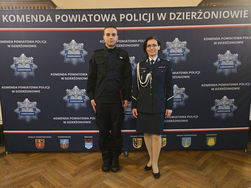 Posterunkowy Oliwier Sobol złożył słowa ślubowania w Komendzie Powiatowej Policji w Dzierżoniowie. Akt przyjęła komendant Monika Kudła-Myślicka. Komenda informuje o trwającym naborze i podaje dane kontaktowe.